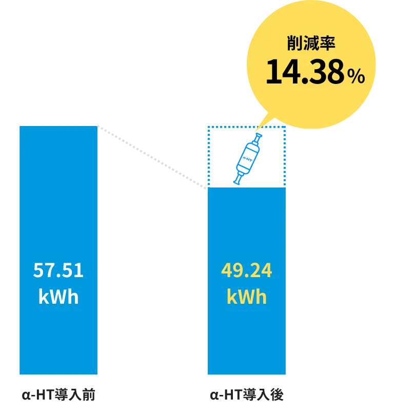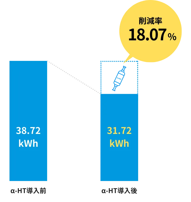 限定的にα-HTを導入し、導入前後の効果を電力測定や温度測定で客観的に計測します。その後、α-HT設置前後の消費電力を比較し、実際の省エネ効果を詳細にまとめた「効果検証レポート」をご提示します。